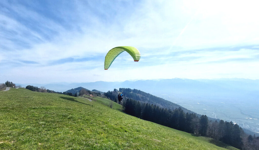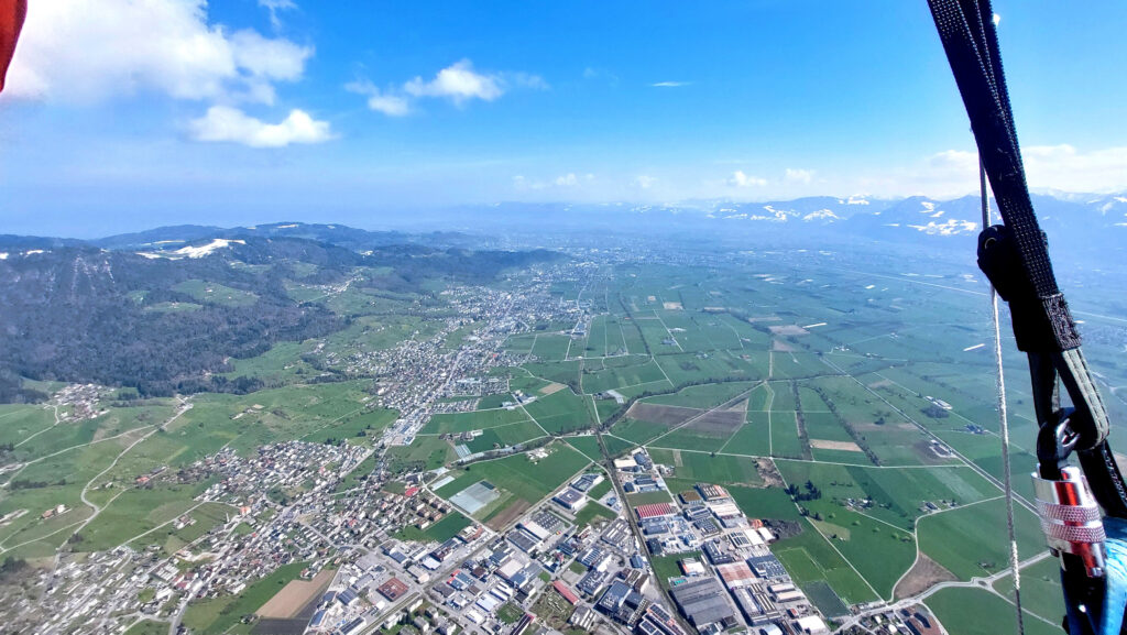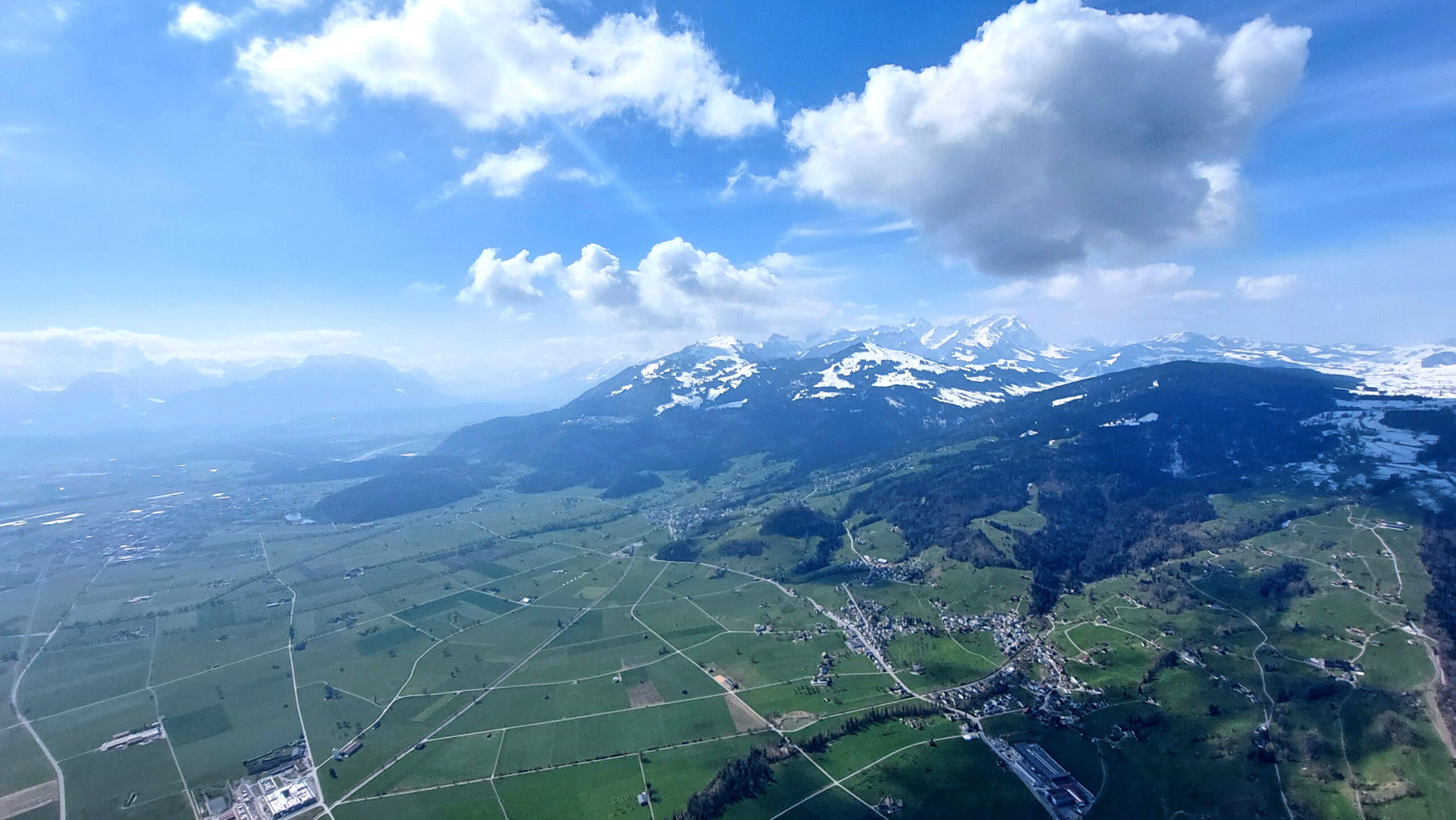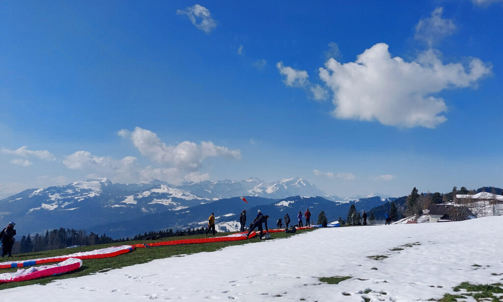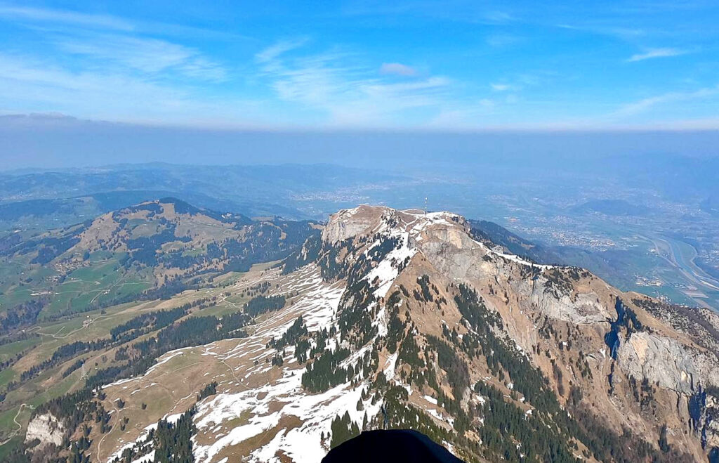 Nachdem es am 4. Januar schon einmal für eine Stunde flog, reichte es heute für einen 2h Flug. Am Startplatz dachten wir noch, dass die Thermik heute zu schwach sei. Nach dem Kurbeln zu dritt in den Standardschläuchen, setzte sich Raphi Richtung Balgach ab und drehte dort wieder auf. Ich wagte ebenfalls den Versuch und es gelang relativ einfach, dort mit genug Höhe anzukommen. Ich konnte ebenfalls bei seitlicher Sonneneinstrahlung easy aufdrehen und die Aussicht über das Rheintal geniessen. Die oben einfliessende Kaltluft aus der Nebelwand von Walzenhausen sorgte für einen guten Temperaturgradient. Bei zunehmender Labilisierung ging es entspannt wieder zurück Richtung Landeplatz. Mit dabei waren Raphi, Othmar und Remo.