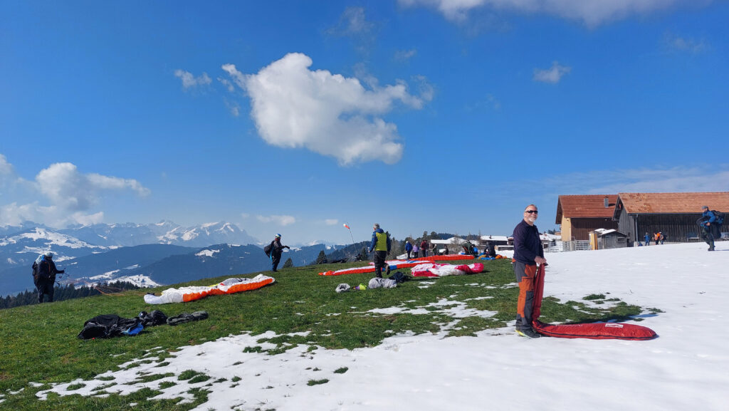 Tömi hatte es schon 2 Tage zuvor angekündigt, dass es heute einen top Flugtag geben wird. Nach meinem Bike&Hike oben angekommen waren um 11 Uhr schon viele Gleitschirme ausgelegt. Die Thermik setzte zeitgleich ein, erste Wölkli hoch über der Krete zeigten es an. Nach dem Start setzte das Steigen sofort ein, sodass man sich im Nu auf 2000müM über dem Startplatz wieder traf. Ich machte die Standardrunde 1x Schwamm/retour. Remo flog noch „etwas“ weiter Richtung Wildhaus, was ein 54km Dreieck ergab.